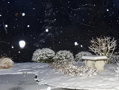 As predicted we have snow here this morning. There’s about 3-4″ on the ground at the moment, but it’s still coming down– half-heartedly, but it’s still snowing.