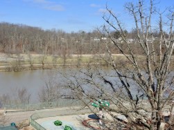 Canoe & kayak launching area still under water. Green square is top of a trash can.